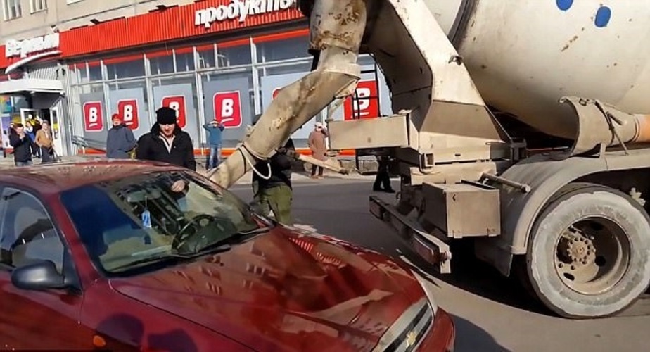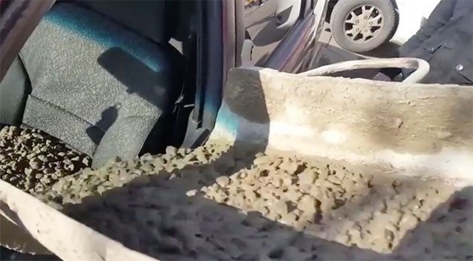 یک مرد روسی، ماشین همسر خود را با مَلات سیمانی پر کرد. او این کار را برای تنبیه همسرش که نام فامیل خود را به صورت قانونی تغییر داده بود، انجام داد.