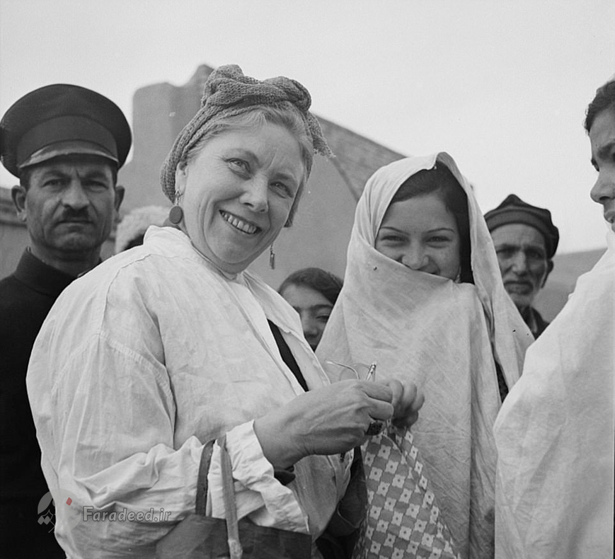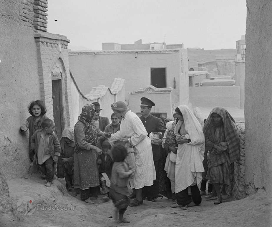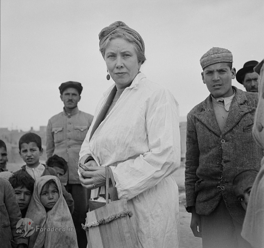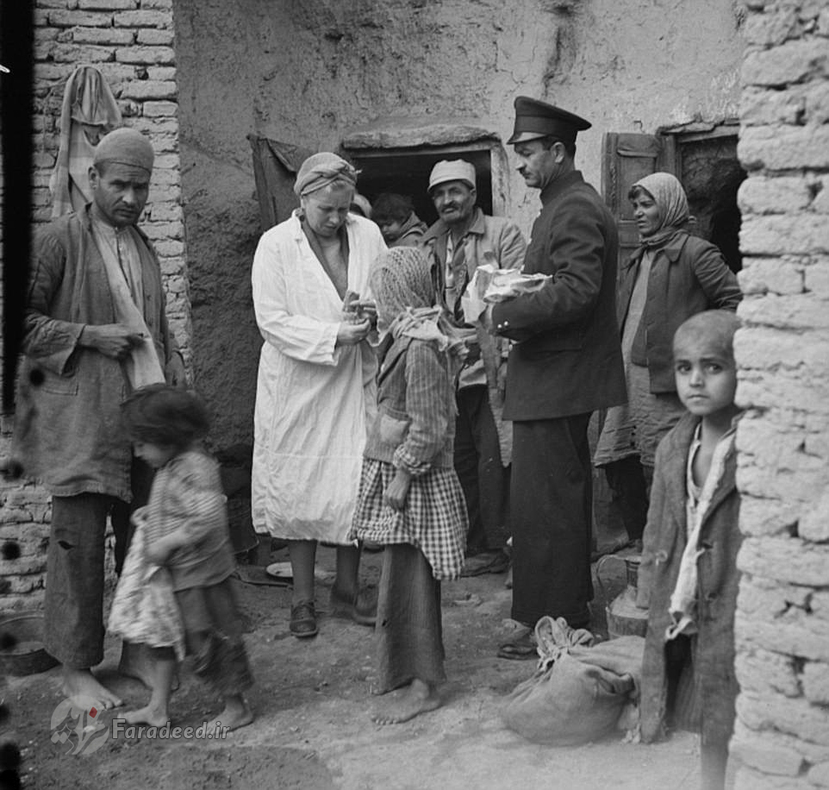"لوئیز دریفوس" همسر وزیرمختار امریکا در حال توزیع غذا و مایحتاج از میان مردم گرسنه در حاشیه تهران