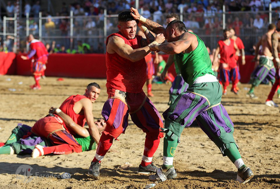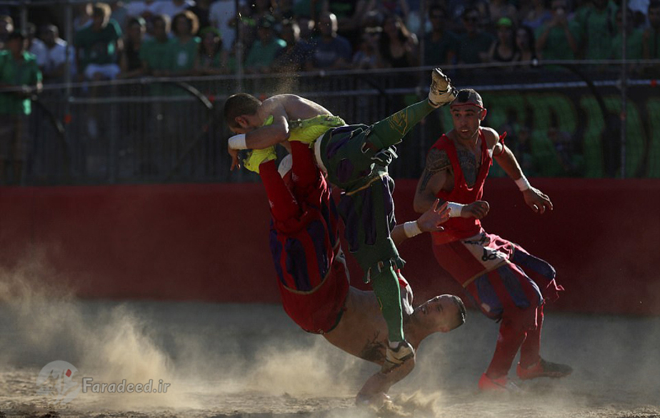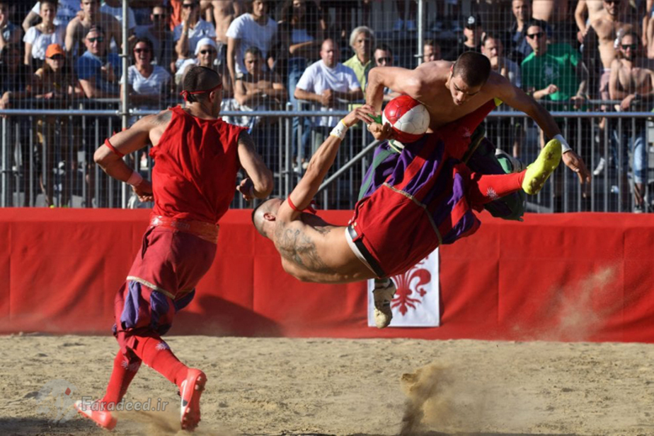 فرادید | خشنترین فوتبال جهان امسال نیز در شهر فلورانس ایتالیا برگزار شد و خشن ترین فوتبالیستها در میدان "سانتاکروس" با مشت و لگد به جان هم افتادند.