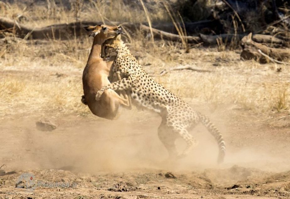 فرادید | عکاس 62 ساله افریقای جنوبی موفق شد از صحنه شکار یک آهو به دست یوزپلنگ عکاسی کند.