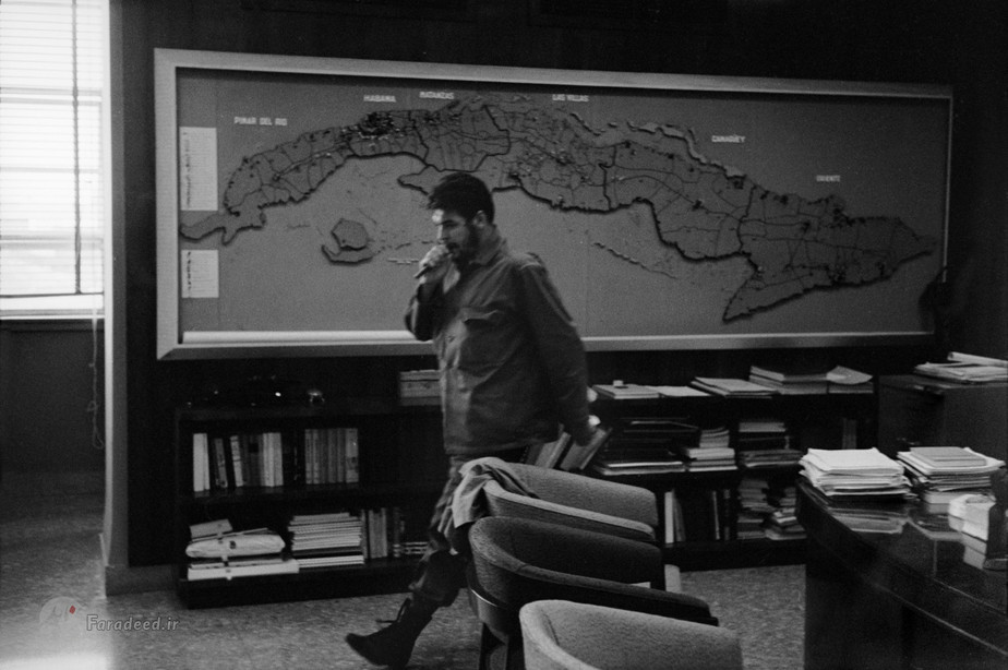 "من به همراه لورا برکیست، خبرنگار آمریکایی مجله لوک به ملاقات او رفتم. "چه" در روزهای پایانی سال 1962 به هنگام ملاقات لورا در نیویورک، او را به هاوانا دعوت کرده بود. به محض ورود به اتاق، متوجه شدم که پنجره ها با پرده پوشیده شده اند. از آنجاییکه عدم نور کافی می توانست در کار عکاسی من مشکل ساز شود، از او پرسیدم "امکان دارد که پرده ها را بالا بزنم؟" و او در جواب گفت: "نه، نیازی نیست." چند دقیقه بعد متوجه شدم که او بسیار بر روی حرف هایی که در مصاحبه می زند، متمرکز است و از این روست که نمی خواهد که اتفاقات بیرون، حواس او را پرت کنند.