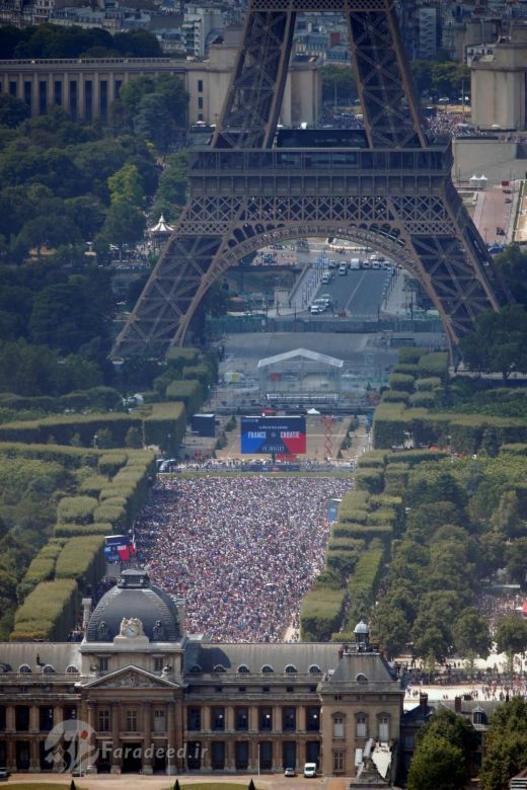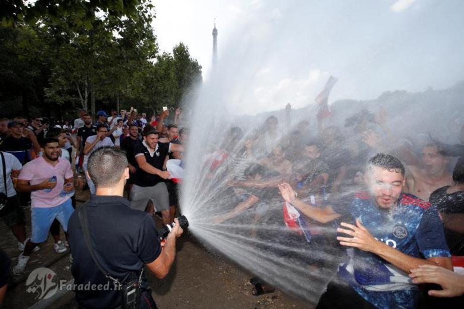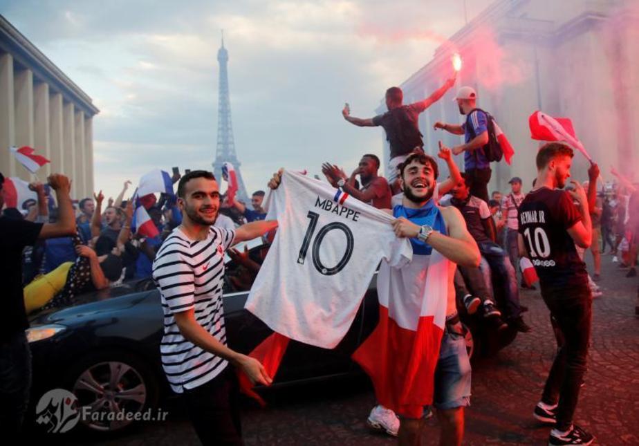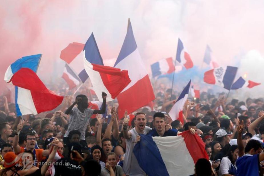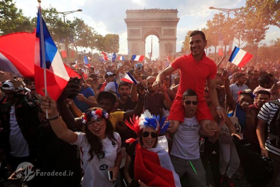 هزاران شهروند فرانسوی پس از پیروزی تیم ملی کشورشان بر بلژیک و راهیابی آبیها به فینال جام جهانی به خیابانها ریختند. در پاریس، پایتخت، هزاران نفر خیابان شانزلیزه در مرکز شهر را عملا اشغال کردند. نیروهای پلیس و پلیس ضد شورش در این خیابان و در اطراف بنای طاق نصرت حضور گستردهای دارند.