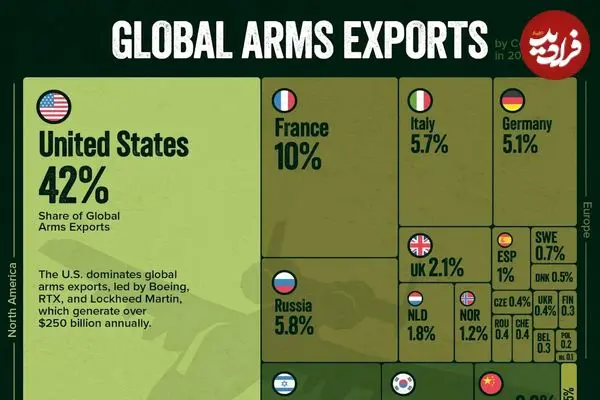 ۳۵ صادرکننده بزرگ تسلیحات نظامی جهان در سال ۲۰۲۵ + اینفوگرافی و جایگاه ایران