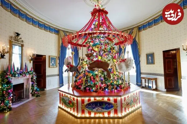 ملانیا ترامپ، بانوی اول ایالات متحده، با رونمایی از تزئینات کریسمس کاخ سفید، امسال ۵۱ درخت، بیش از ۷۶۰۰ متر روبان و حدود ۲ هزار رشته چراغ را در بخشهای مختلف کاخ سفید نصب کرده و موضوع کریسمس امسال را «هرجا دل است، خانه همانجاست» معرفی کرد.