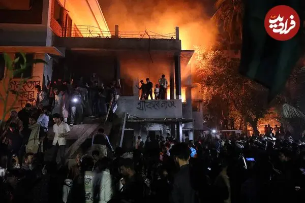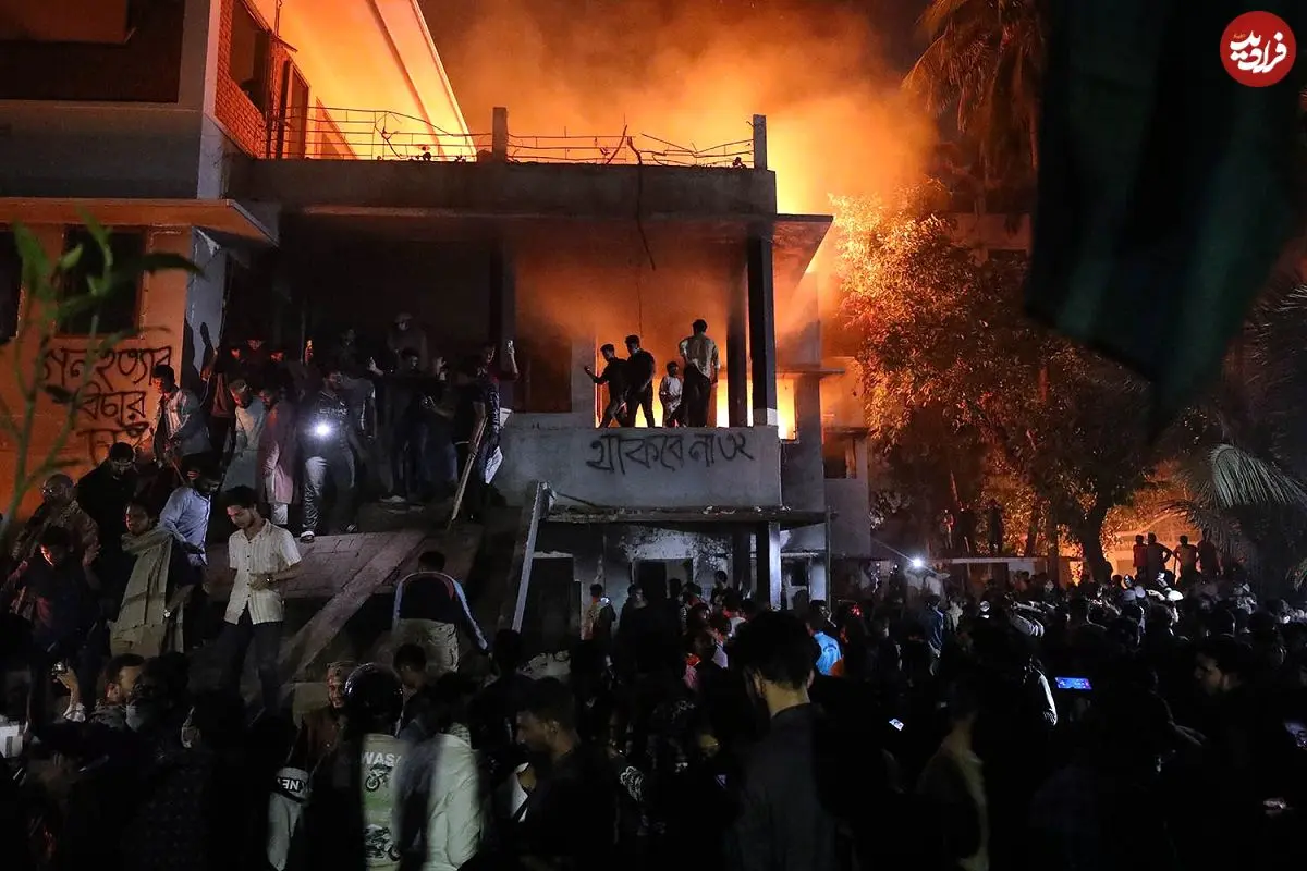 ببینید؛ آشوب در پایتخت بنگلادش؛ ساختمان یک روزنامه را به آتش کشیدند