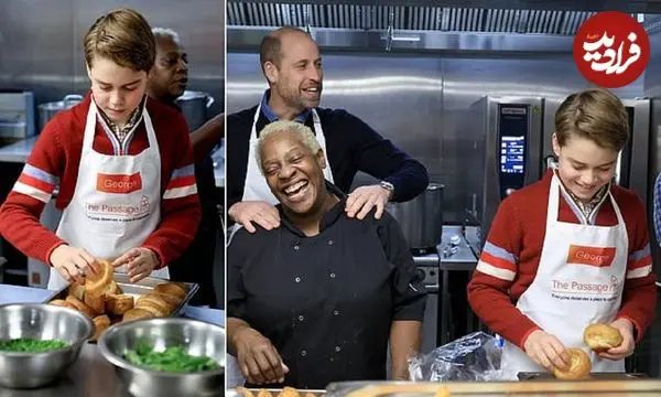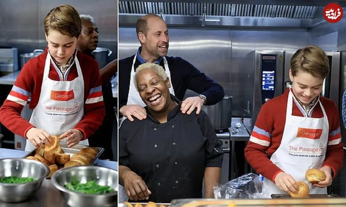 شاهزاده جرج با جدیت آستین‌هایش را بالا زد و به پدرش، شاهزاده ویلیام، در آماده‌سازی ناهار کریسمس برای بی‌خانمان‌ها در همان خیریه‌ای کمک کرد که شاهزاده ولز در سال ۱۹۹۳ همراه با مادرش، پرنسس دایانا، از آن بازدید کرده بود.