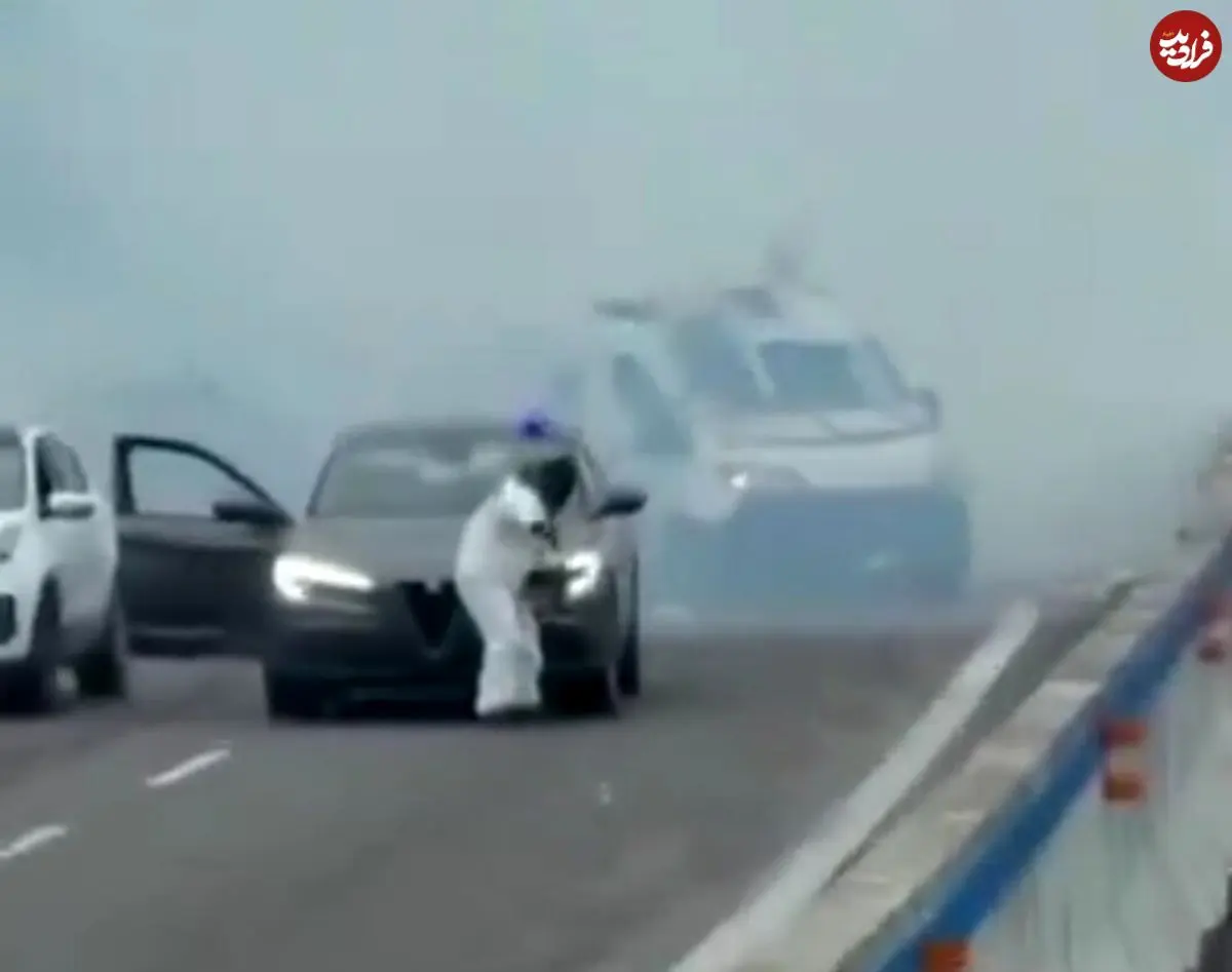 ببینید| حمله به خودروی حمل پول در جاده! تصاویری از لحظه تیراندازی