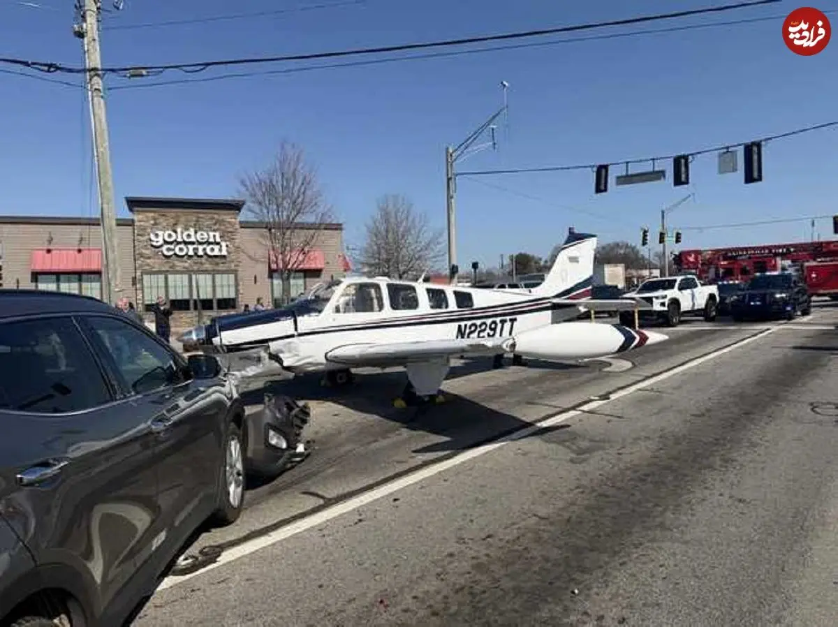 یک هواپیمای سبک هنگام فرود اضطراری در وسط یک بزرگراه در شهر گینزویل ایالت جورجیا به چند خودروی در حال حرکت برخورد کرد.