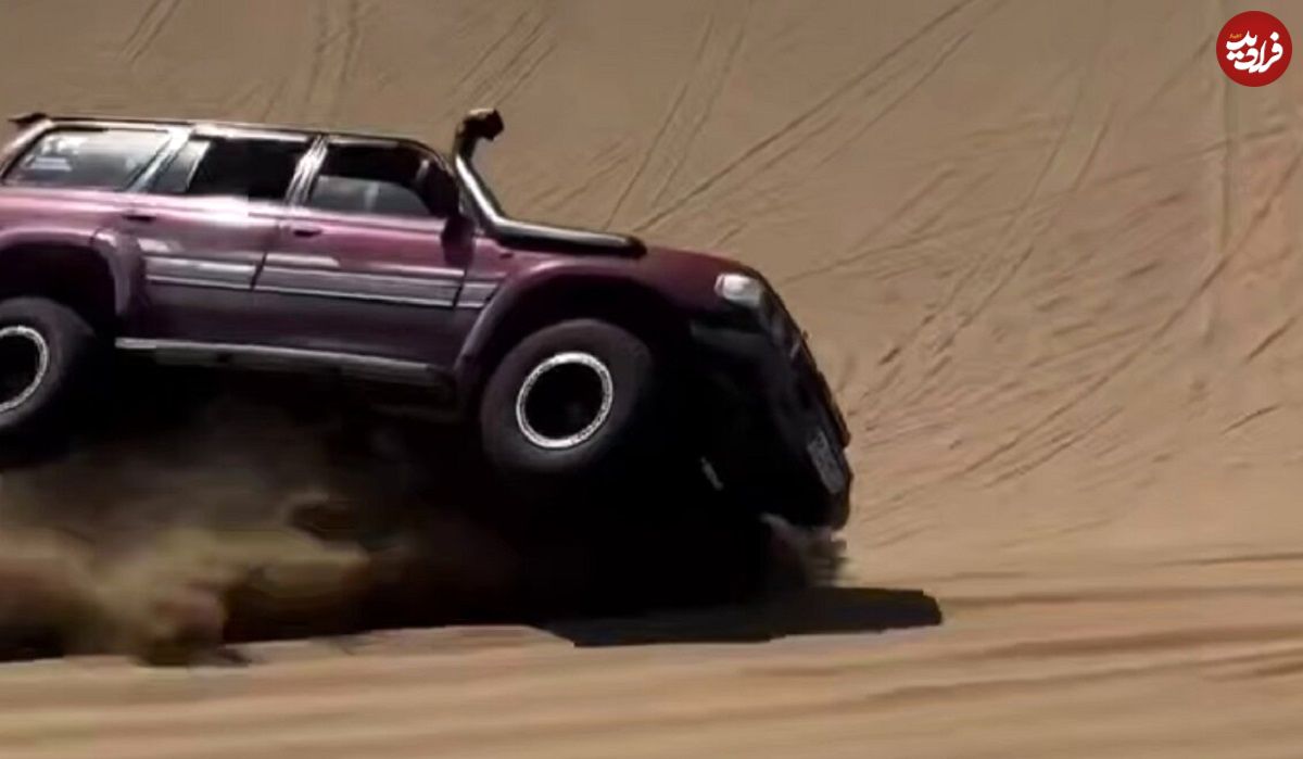 ببینید؛ لحظه ترسناک چپ کردن خودروی آفرود در کویر مرنجاب