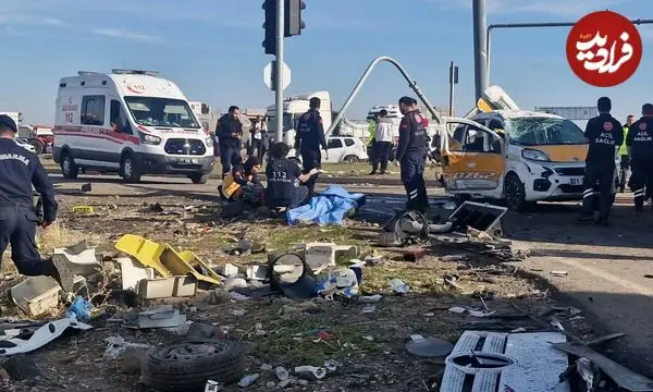 ببینید؛ لحظه دلخراش متلاشی کردن یک خودروی سواری توسط تریلی مقابل دوربینهای مدار بسته با ۴ کشته