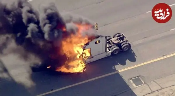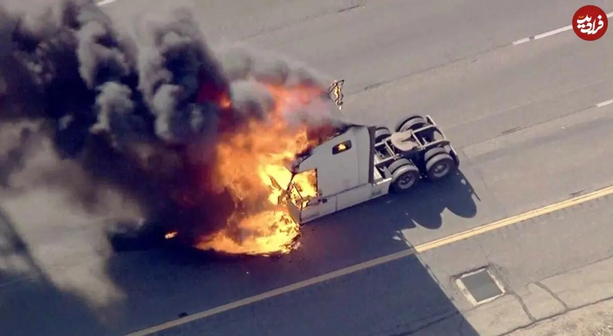 ببینید؛ آتش گرفتن یک کامیون در جاده