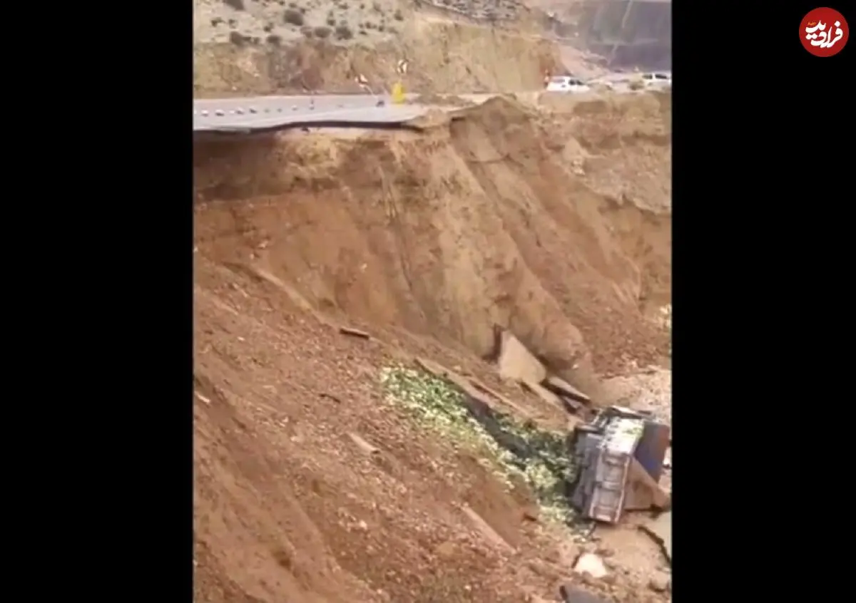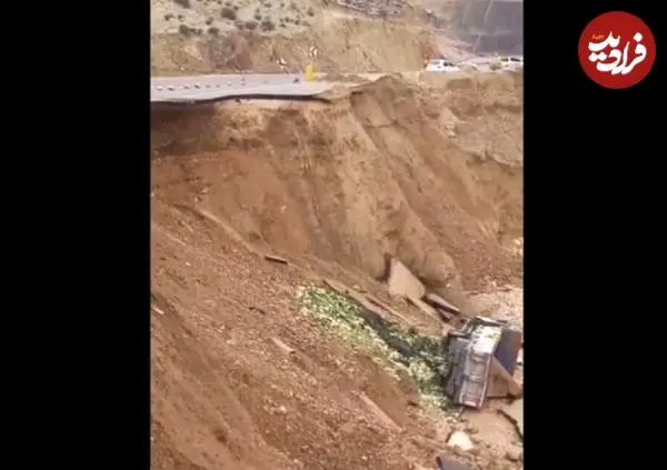 ببینید| سقوط کامیون به دره؛ تصاویر هولناک از رانش زمین در ایذه