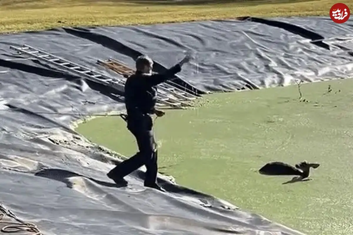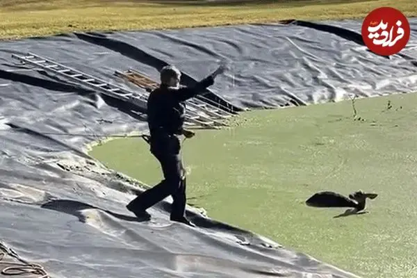 ببینید| لحظه نجات آهوی سقوط کرده در حوضچه آب