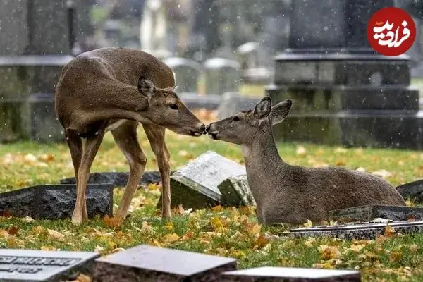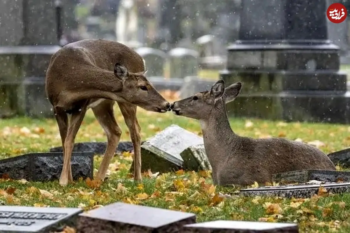 ببینید| هجوم گوزنهای گرسنه به قبرستان