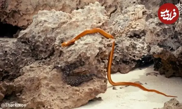 یک مار خوششانس با کمک نیروی جاذبه از دهان رقیبش خارج شد. ویدئوی منتشر شده مار کبرا را در حال خزیدن روی شنها را نشان میدهد، در حالی که یک افعی از دهانش بیرون زده است.
