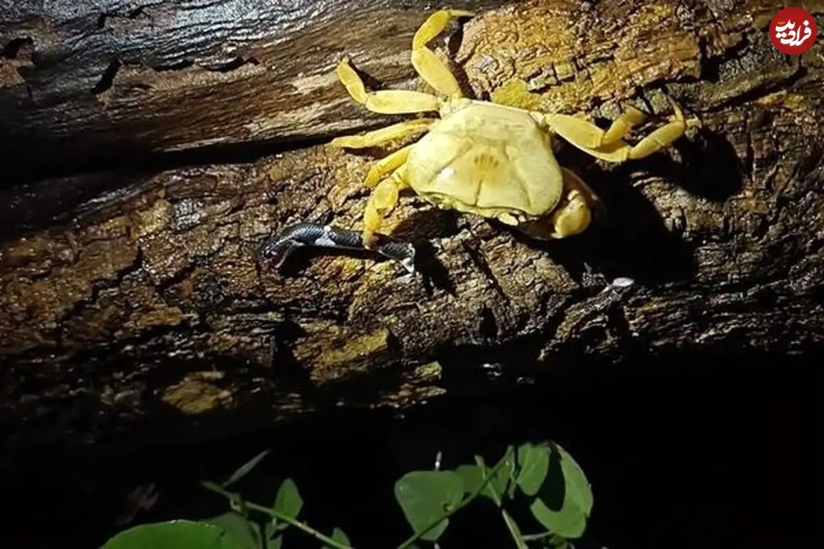 تصویری عجیب از دل طبیعت، خرچنگی را نشان میدهد که سر یک مار را در چنگ خود گرفته است.