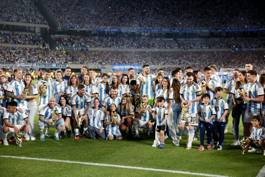 آرژانتینیها همچنان سرمست از فتح جام جهانی هستد. آرژانتین در اولین بازی خود پس از قهرمانی در جام جهانی ۲۰۲۲ به مصاف پاناما رفت. این دیدار با برتری ۲-۰ آلبی سلسته خاتمه یافت. بازیکنان آرژانتین بعد از این دیدار در جشن قهرمانی حاضر شدند و به هرکدام از آنها یک جام جهانی نمادین هدیه شد: