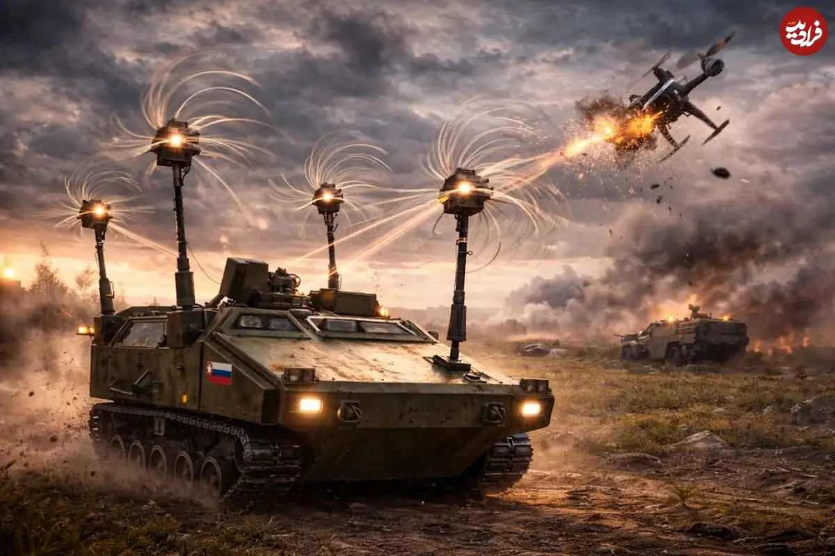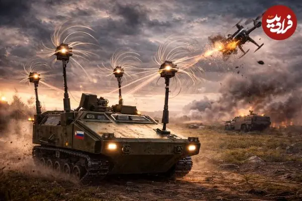 تصاویر| رونمایی نیروهای روسیه از زره‌پوش ضد پهپاد جدید عجیب با کابل‌های چرخان