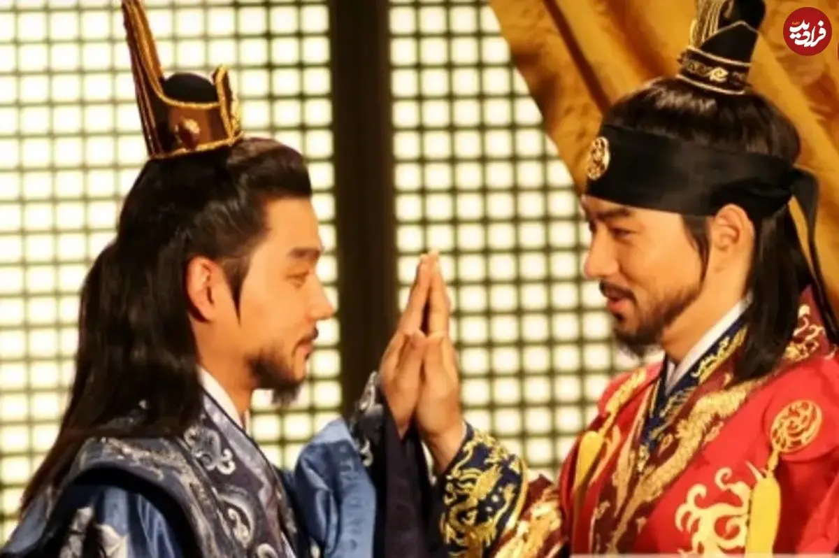 در اینجا تصویری از کیم سونگ سو و سونگ ایل گوک بازیگران نقشهای تسو و جومونگ را در پشتصحنه سریال جومونگ ملاحظه میکنید.