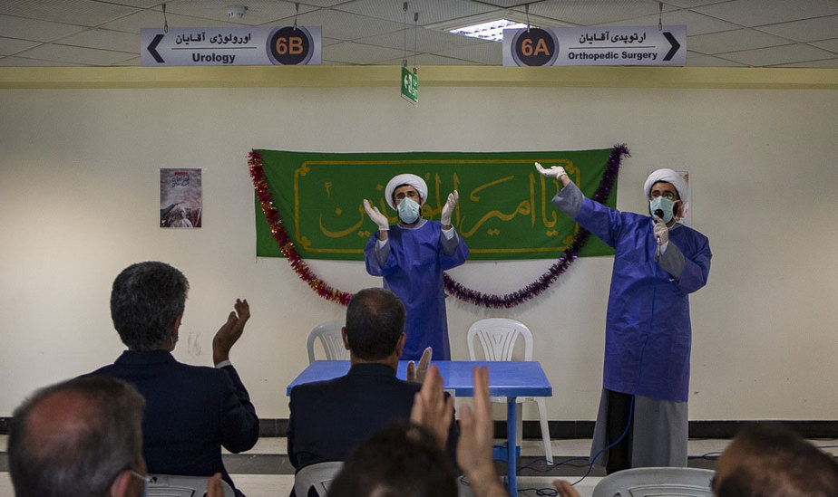 مراسم شب ولادت امیرالمومنین علیه السلام و جشن روز پدر با حضور پرسنل درمانی بیمارستان بقیةالله در بخش ویژه نگهداری بیماران کرونایی عصر شنبه ۱۷ اسفند ۹۸ برگزار شد. در این مراسم از پزشکان و پرستاران بخش ویژه کرونا تجلیل و تقدیر شد.