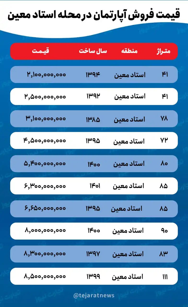 مشاوران املاک فعال این منطقه میگویند واحدهای مسکونی در استاد معین از حدود قیمت متری 35 میلیون تومان شروع میشود و تا متری 100 میلیون تومان نیز میرسد. این دامنه قیمتی بالا باعث میشود خریداران انتخابهای بیشتری برای خرید خود داشته باشند.