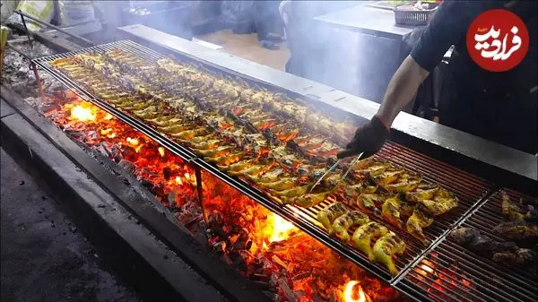 ببینید؛ غذای خیابانی در مالزی؛ پخت مرغ کبابی و یک غذای محلی با نارگیل و برنج در بامبو