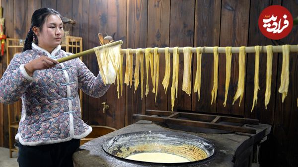 ببینید؛ غذای روستایی در چین؛ تهیه رشته سویا چینی و پخت غذا با آن