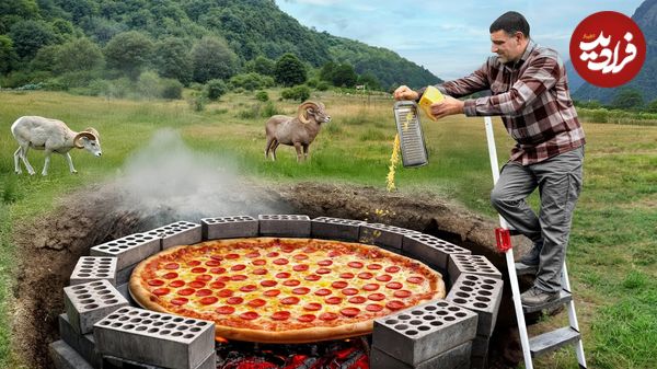 ببینید؛ غذای روستایی در آذربایجان؛ پخت پیتزای بزرگ در تنور زیر زمینی در کوهستان