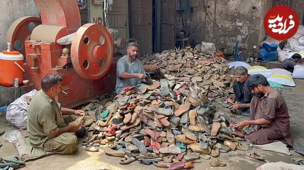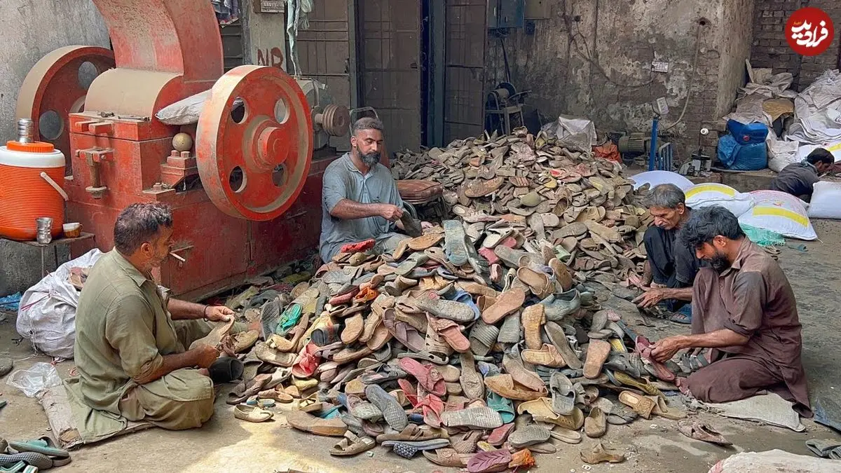 ببینید| مراحل بازیافت دمپایی های قدیمی و تولید دمپایی های جدید در پاکستان