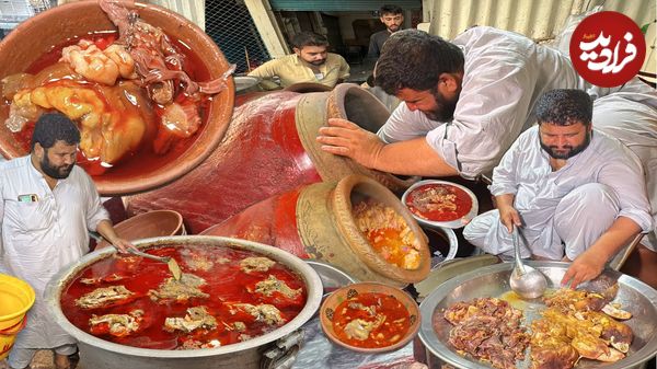 ببینید| غذای خیابانی در پاکستان؛ پخت 200 کیلو کله پاچه برای صبحانه در لاهور