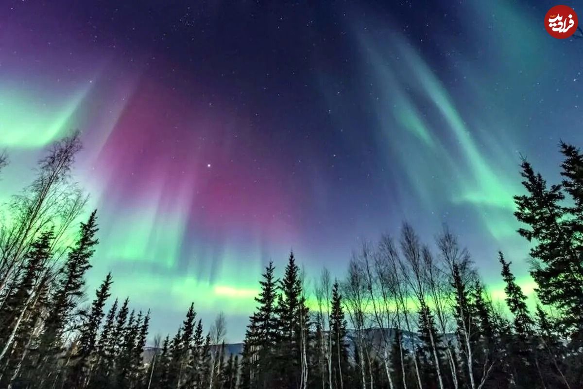 ببینید| شفق قطبی قلههای پوشیده از برف آلاسکا را روشن کرد