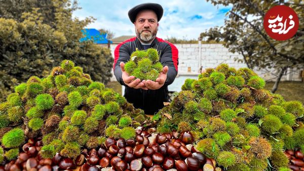 ببینید| غذای روستایی در آذربایجان؛ پخت یک غذای متفاوت با گوشت و شاه بلوط تازه