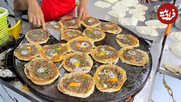 ببینید| غذای خیابانی در مالزی؛ مهارت آشپز خیابانی در پخت املت روتی در کوالالامپور