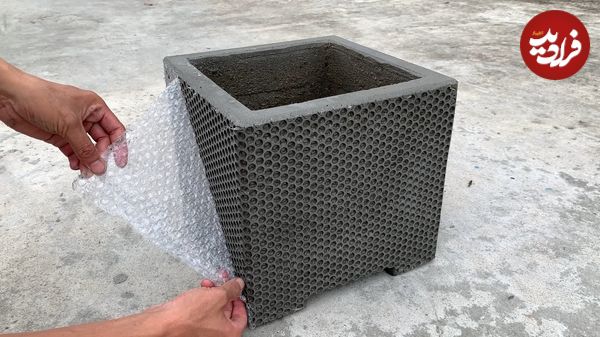 ببینید| با چوب، سیمان و نایلون حباب دار یک گلدان کم هزینه و خاص بسازید
