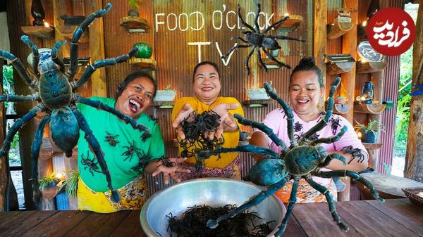 ببینید| غذای روستایی در سنگاپور؛ پخت یک میان وعده عجیب با رتیل!