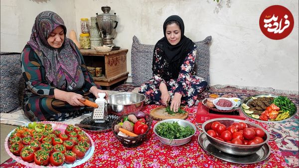 ببینید| غذای روستایی در ایران؛ پخت کتلت و تهیه ترشی گوجه