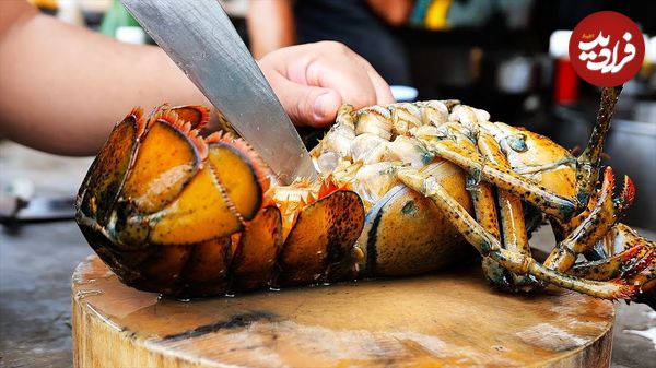 ببینید| غذای خیابانی در تایلند؛ پخت لابستر با سس تخم مرغ و پنیر در بانکوک