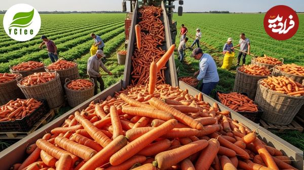 ببینید| چگونه صدها تن هویج در مزارع آمریکا برداشت و فرآوری می شود؟