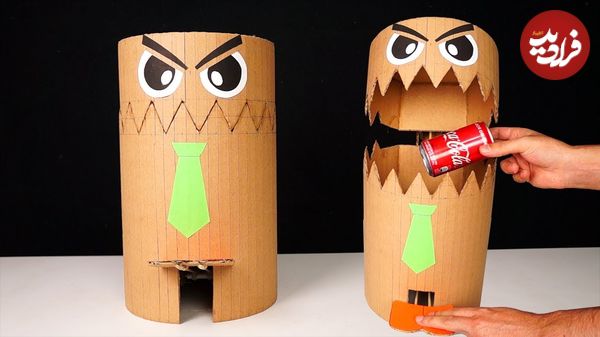ببینید| نحوه ساخت یک سطل زباله پدالی شبیه هیولا با مقوا به روش هنرمند اسپانیایی