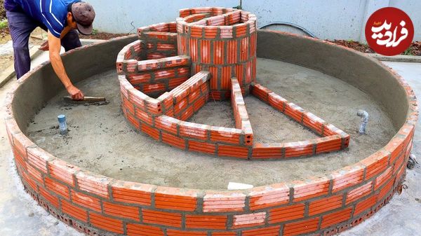 ببینید| مراحل دیدنی ساخت یک آکواریوم گرد و مارپیچی با آجر و سیمان