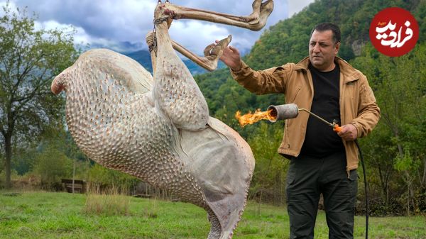 ببینید| غذای روستایی در آذربایجان؛ کباب کردن یک شترمرغ کامل در تنور