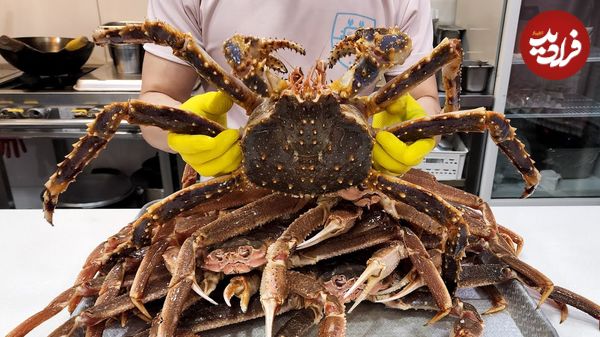 ببینید| غذای خیابانی در کره؛ پخت غذا با شاه خرچنگ، لابستر و خرچنگ برفی در سئول