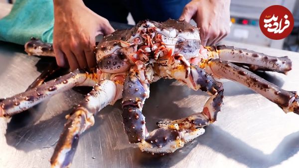 ببینید| غذای خیابانی در تایلند؛ پخت دو مدل غذا با خرچنگ آلاسکایی بزرگ در بانکوک