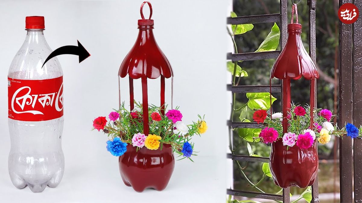 ببنیید| نحوه ساخت گلدان آویز ساده با بطری پلاستیکی به روش استاد بنگلادشی