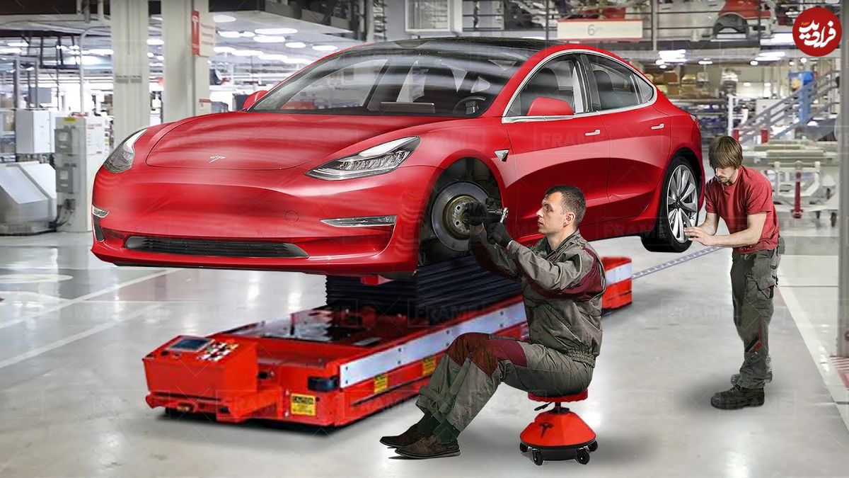 ببینید| خط تولید خودروی برقی مدل 3 در پیشرفته ترین کارخانه تسلا در آلمان