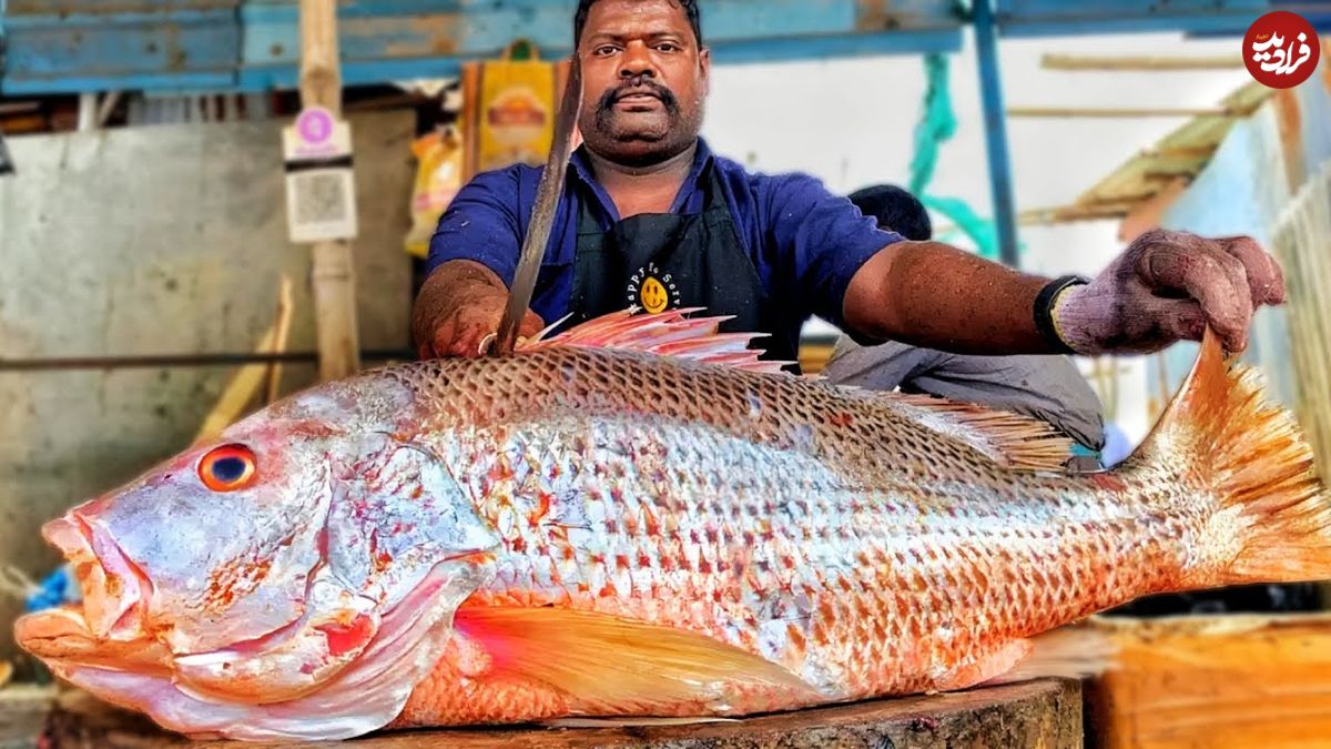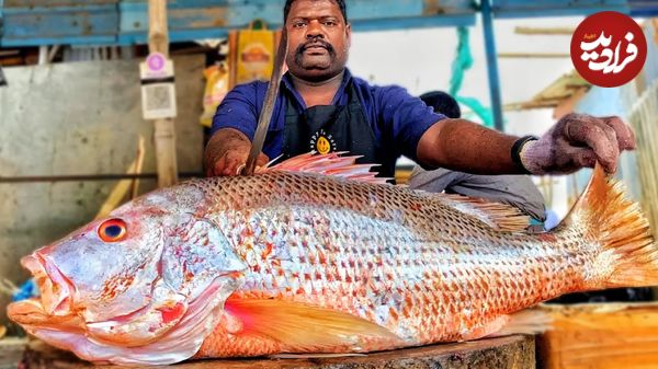ببینید| مهارت جالب و دیدنی یک ماهی فروش هندی در برش زدن ماهی اسنپر بزرگ