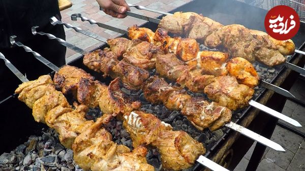 ببینید| غذای خیابانی در اوکراین؛ انواع کباب، ماهی سوخاری، سوسیس و ... در کی یف