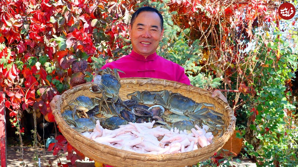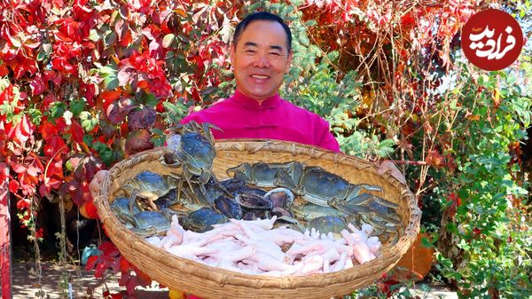 ببینید| غذای روستایی در چین؛ پخت یک غذای متفاوت با خرچنگ، پای مرغ و صدف در روستا