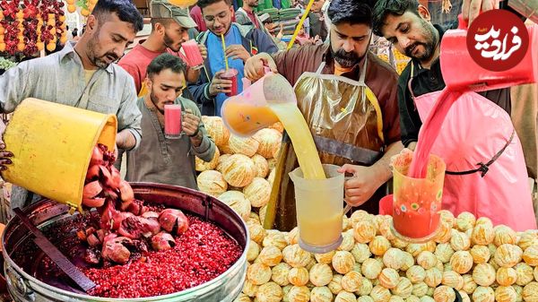 ببینید| غذای خیابانی در پاکستان؛ آب انار و آب پرتقال تازه در کراچی