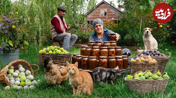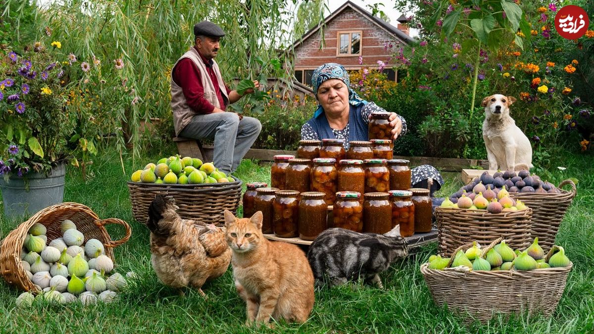 ببینید| غذای روستایی در آذربایجان؛ پخت کیک و تهیه مربا با انجیر در طبیعت زیبای روستا